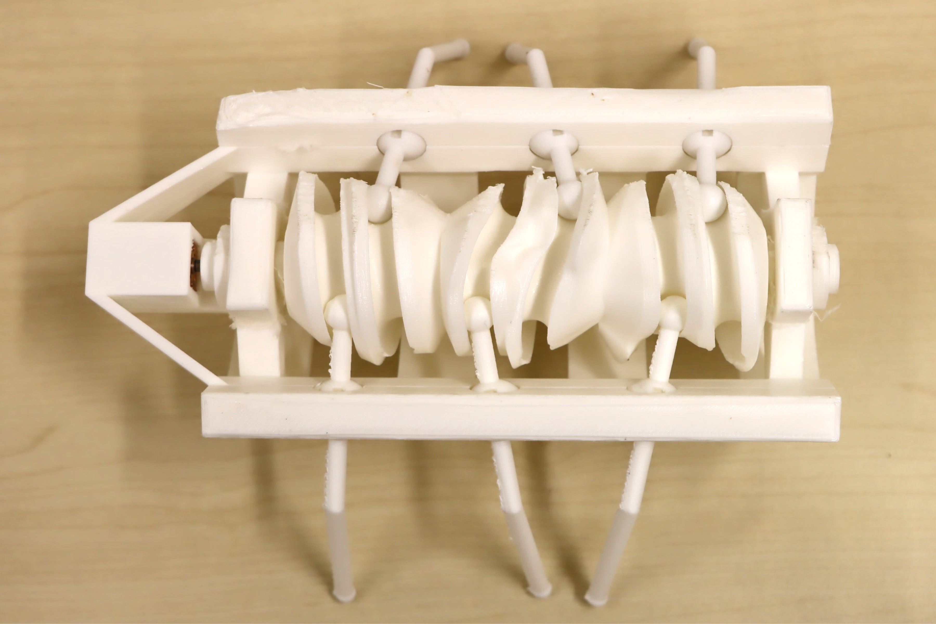 A 6-leg walking robot designed by our approach, where the core is our composite cam-follower mechanism.